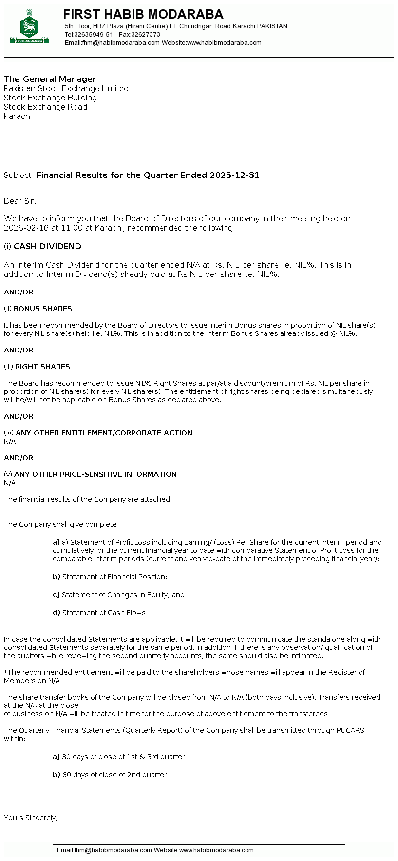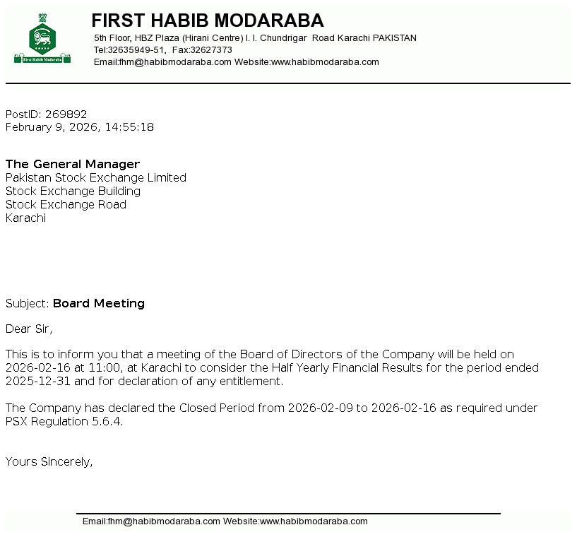 FHAM - First Habib Modarba Ltd. PSX Stock Snapshot | Fundamentals ,Technicals and Market data (PE Book Value Trading Signals EPS ROE ROA)