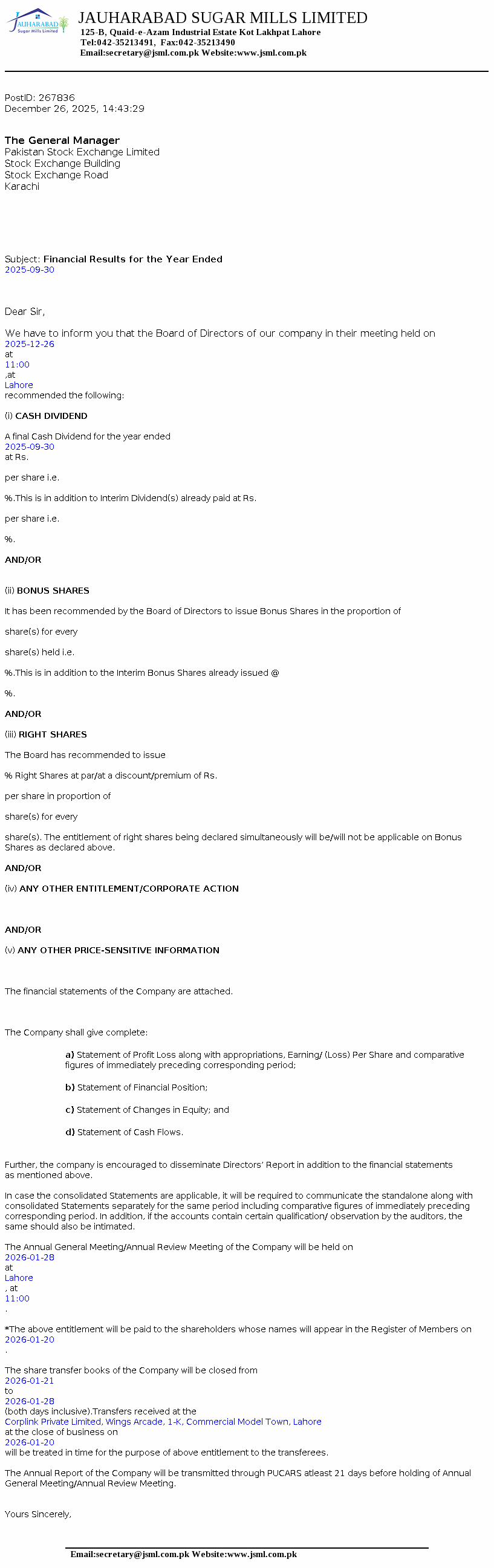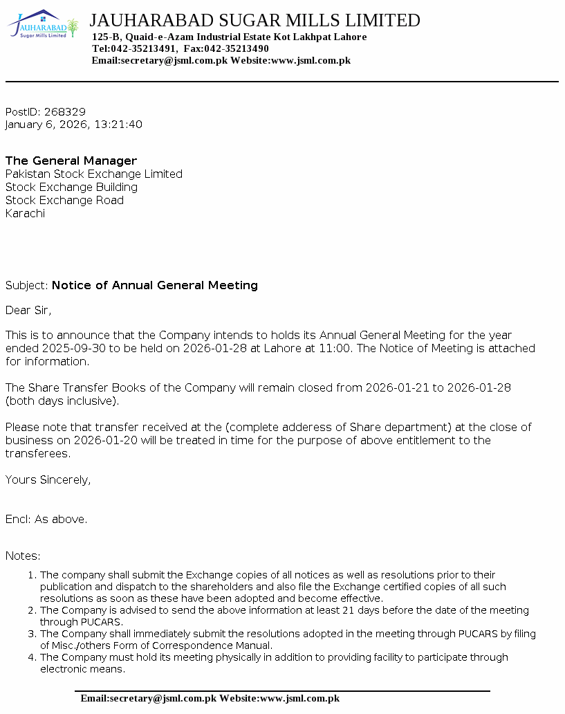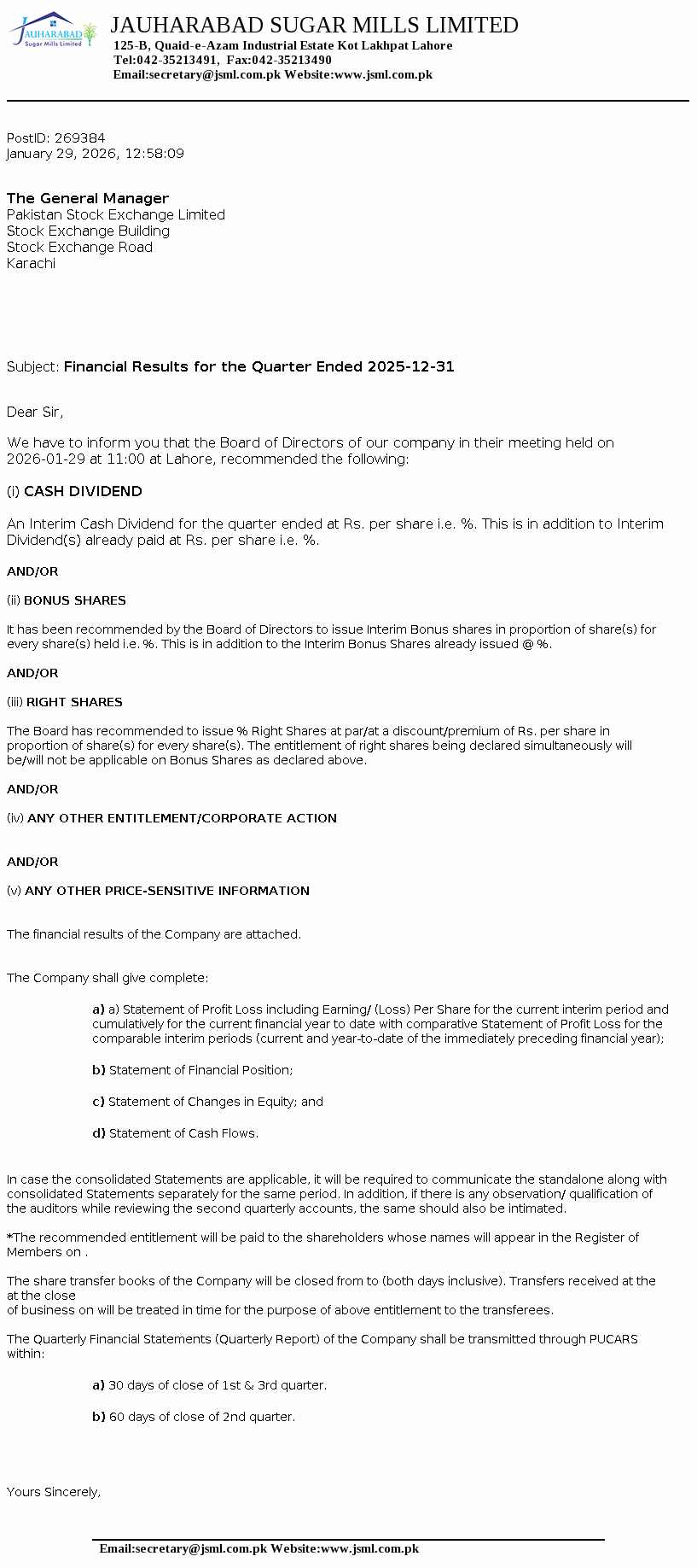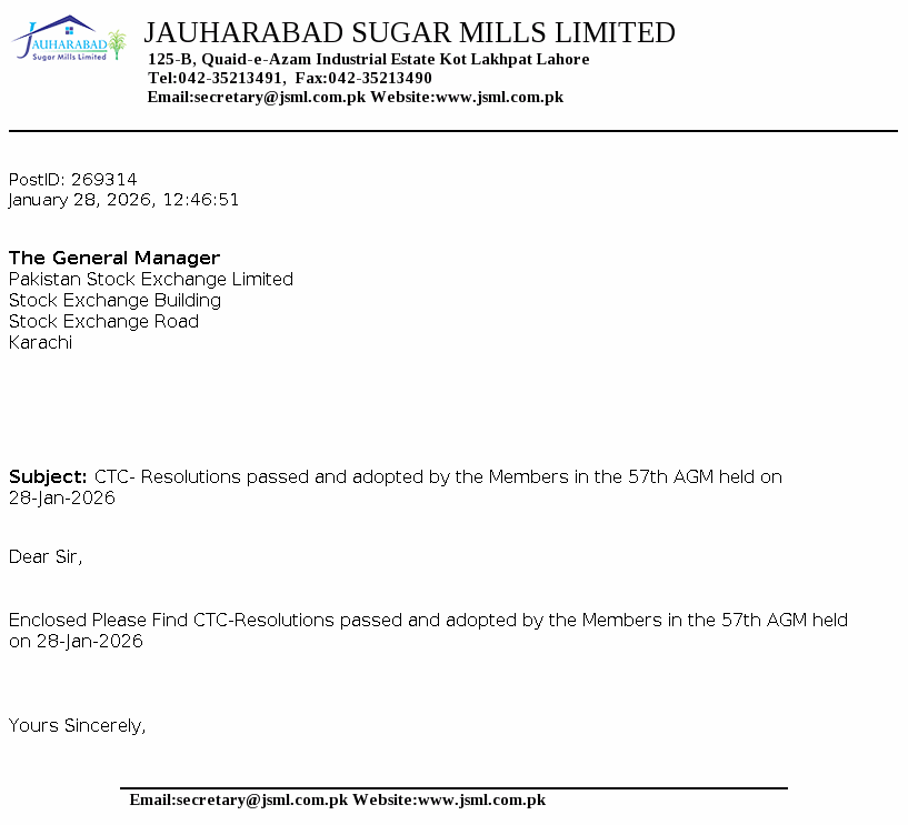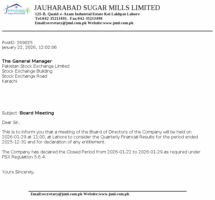 JSML - Jauharabad Sugar Mills Ltd. PSX Stock Snapshot | Fundamentals ,Technicals and Market data (PE Book Value Trading Signals EPS ROE ROA)