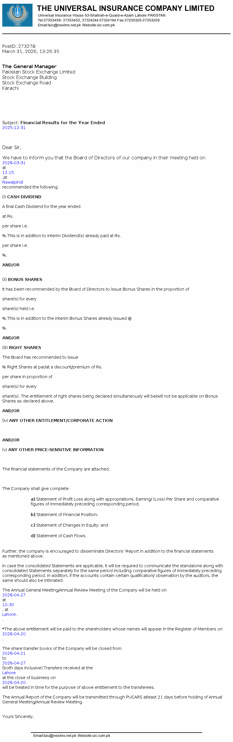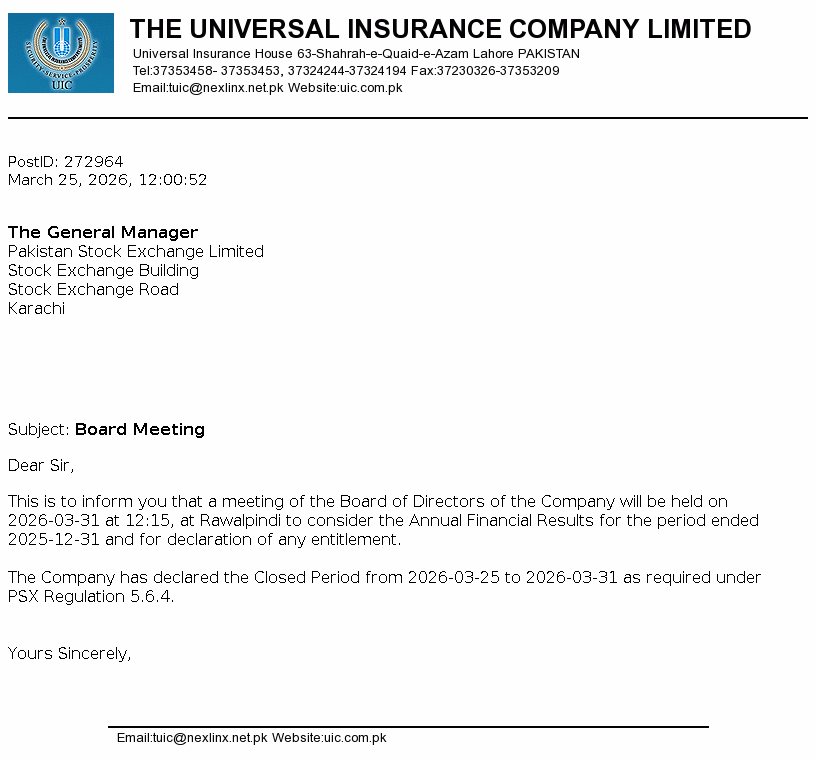 UVIC - Universal Insurance Company Ltd. PSX Stock Snapshot | Fundamentals ,Technicals and Market data (PE Book Value Trading Signals EPS ROE ROA)